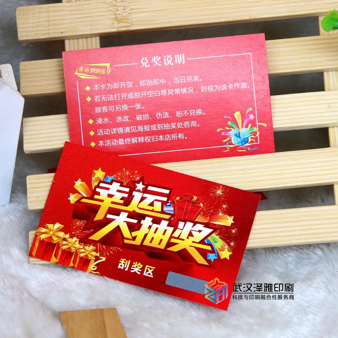 武漢澤雅印刷包裝公司真誠歡迎各地朋友以上是荊州刮刮卡,刮刮卡制作,荊州刮刮卡設計,荊州刮獎卡,聯系洽談:18995659315如果你對我們的產品/服務有疑問,請聯系我們。